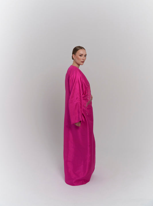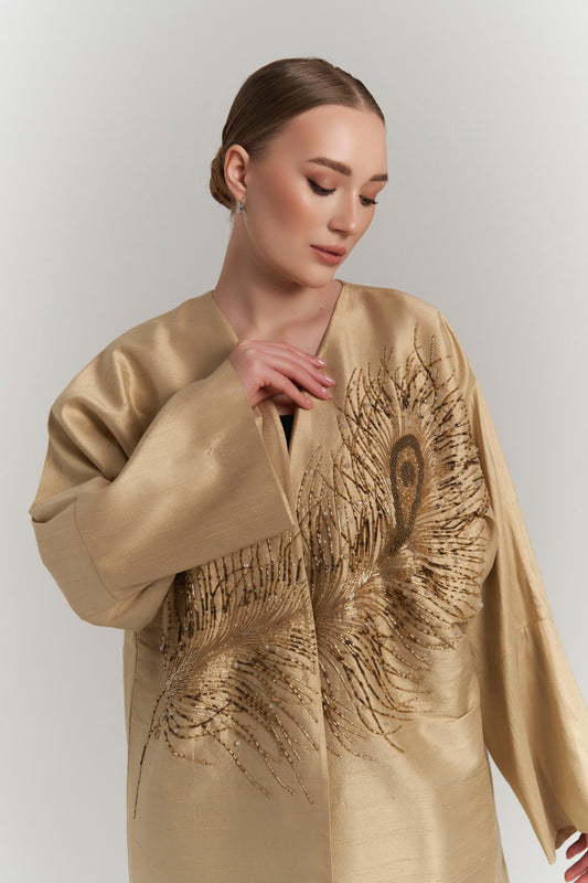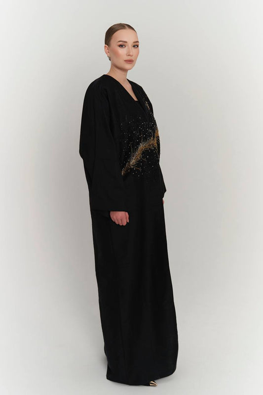 One glance, and you know that the abaya is by LAURA KAZI, embodying a vision of sophisticated femininity, bright colors, luxurious fabrics, and feather prints. The brand was founded by Laura in 2024 and quickly won a loyal following of smart, sartorially savvy women with an eye for quality fabrics and unique designs. The idea for the brand was born during a trip to Morocco in 2012 and was further developed while traveling to other countries with Arabic culture, eventually leading to the design of the first pieces in USA in 2024.